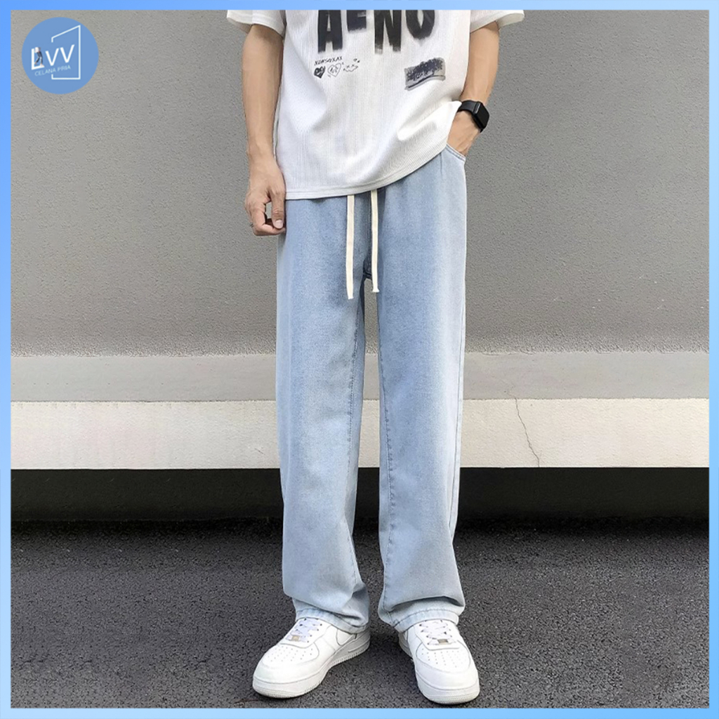 CELANA JEANS PRIA KULOT JEANS JUMBO JEANS PINGGANG KARET CELANA JEANS GOMBRANG CELANA KOREAN STYLE PRIA PANJANG