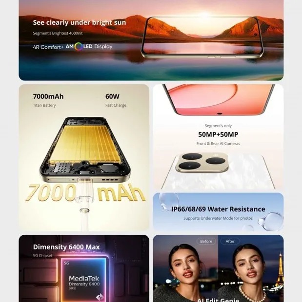 realme 15T 8GB+10GB* | 256GB (7000mAh Battery | NFC | IP66/68/69 Waterproof | 120Hz AMOLED Garansi Resmi - Grandivo