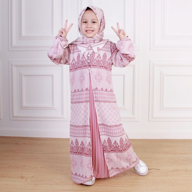Gamis Anak Perempuan Yoriko Ceruty Plisket Free Pashmina 4 - 12 Tahun