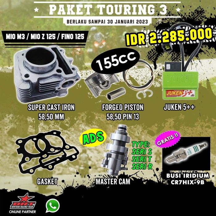 BRT Paket Touring 3-Bore UP MIO M3/MIO Z 125-Blok Piston-Cam ADS-Juken TERLARIS
