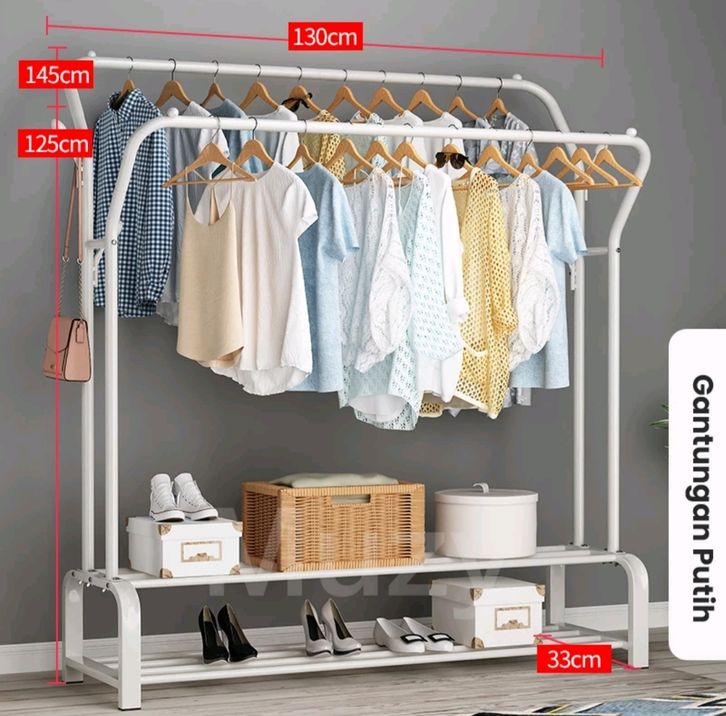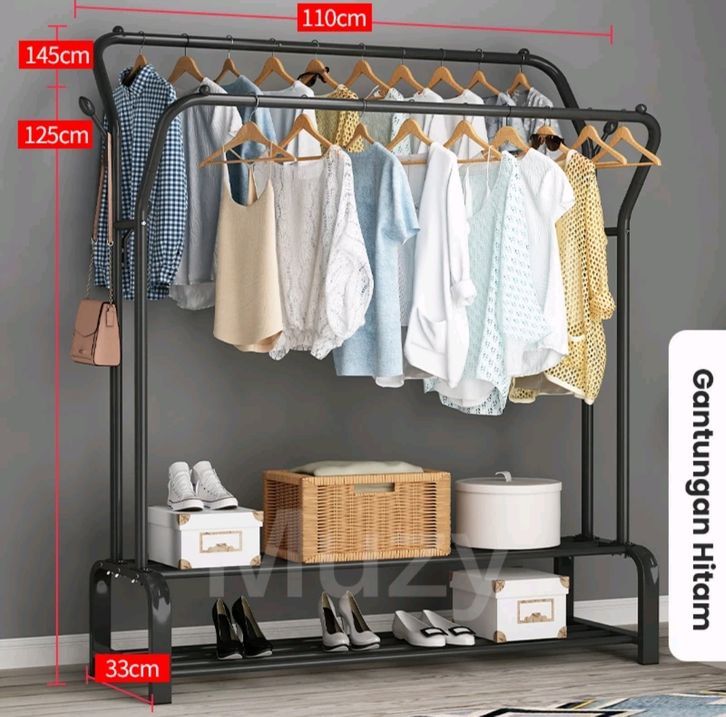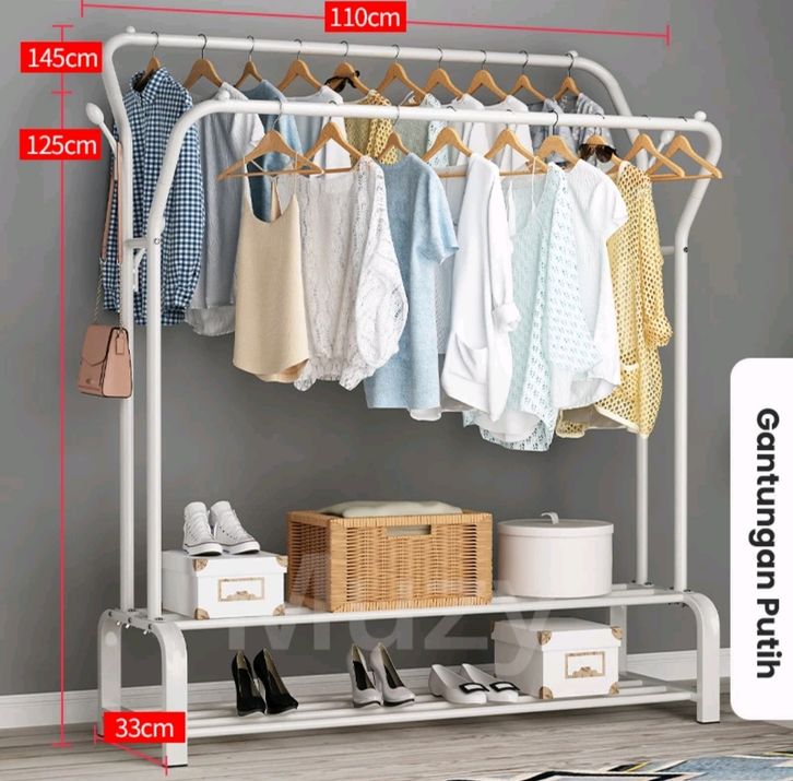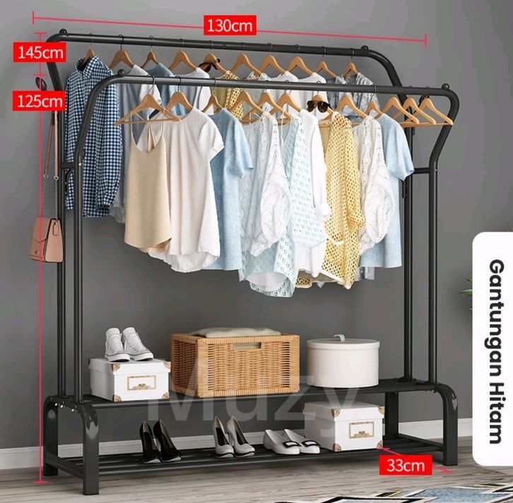 (GRATIS ONGKIR) Muzy Stand Hanger Rak Besi Gantungan Baju Pakaian Rak Jemuran Tas Topi Stand Double Besi HSH133