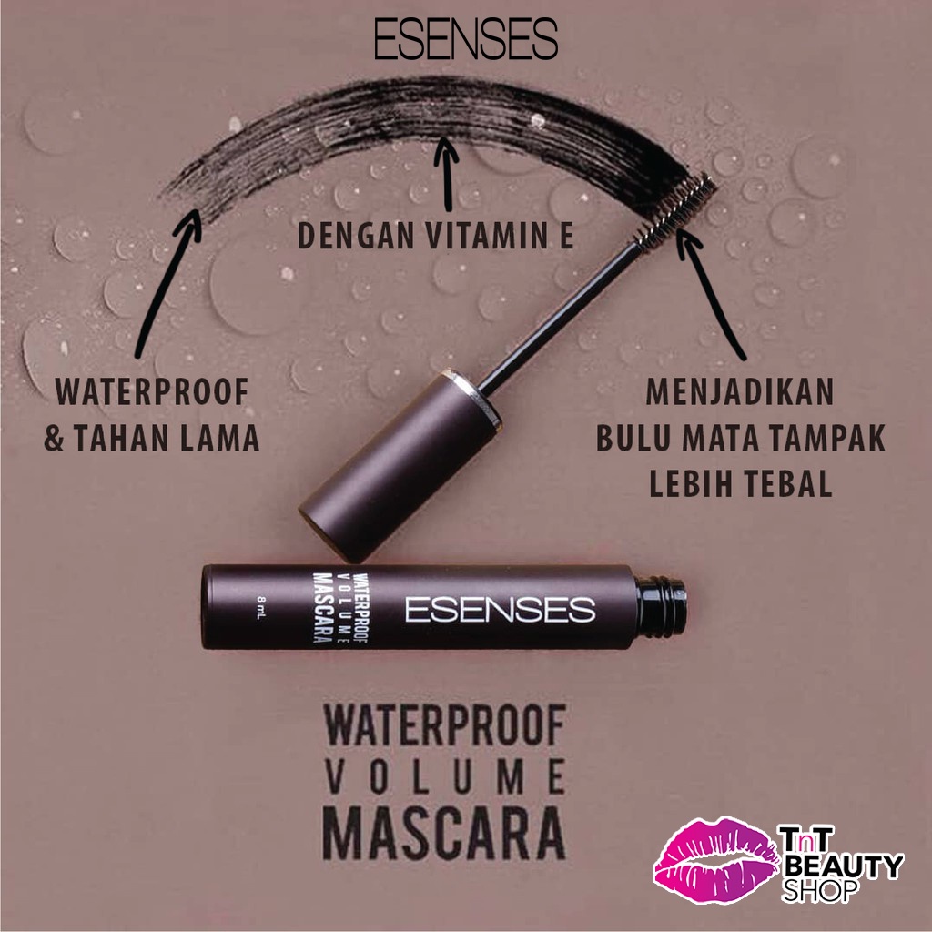 ESENSES WATERPROOF VOLUME MASCARA 8ML [ LONGLASTING ,VITAMIN E DAN UJUNG SIKAT YANG HALUS ]