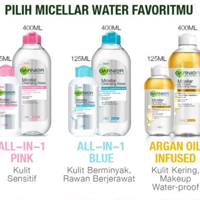 GAR CLEAN MICELLAR WATER 125ML-PINK / SKINCARE PEMBERSIH WAJAH & MAKEUP UNTUK KULIT SENSITIF