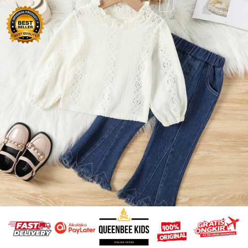 Setelan Set Anak Perempuan Import / Setelan Anak Cewek Blouse Celana Panjang Jeans / One Set Anak Cewe Korean Style