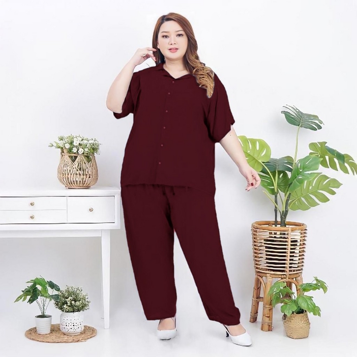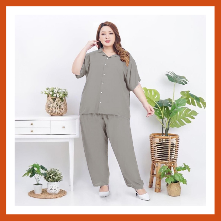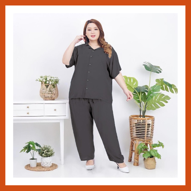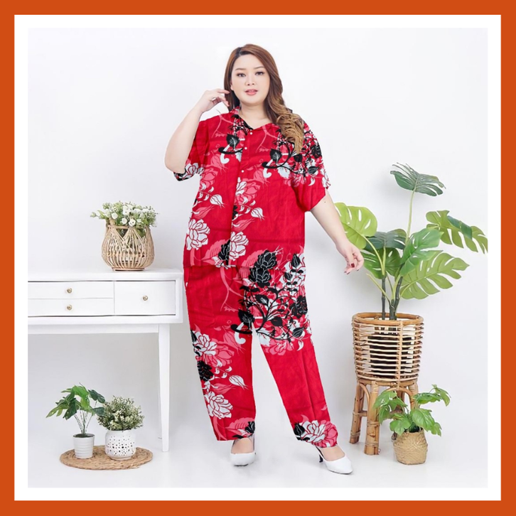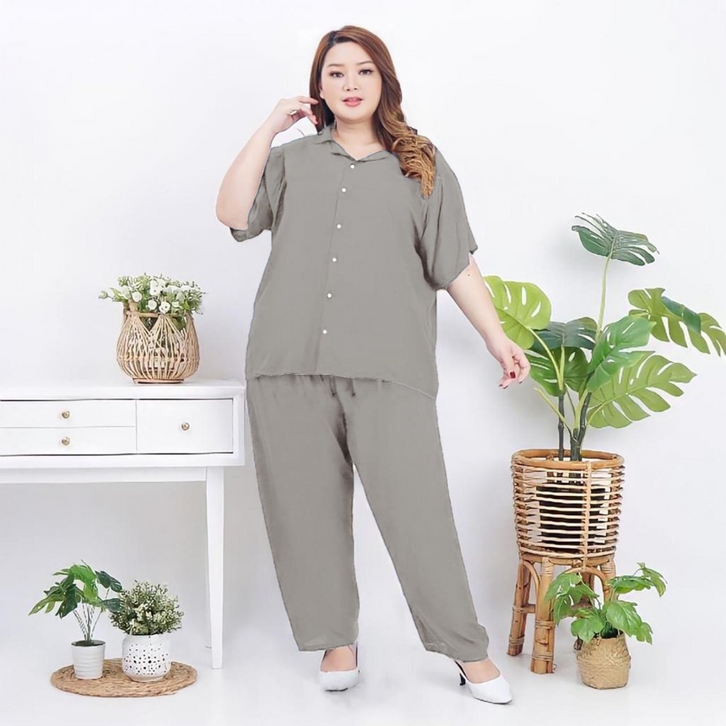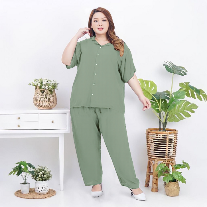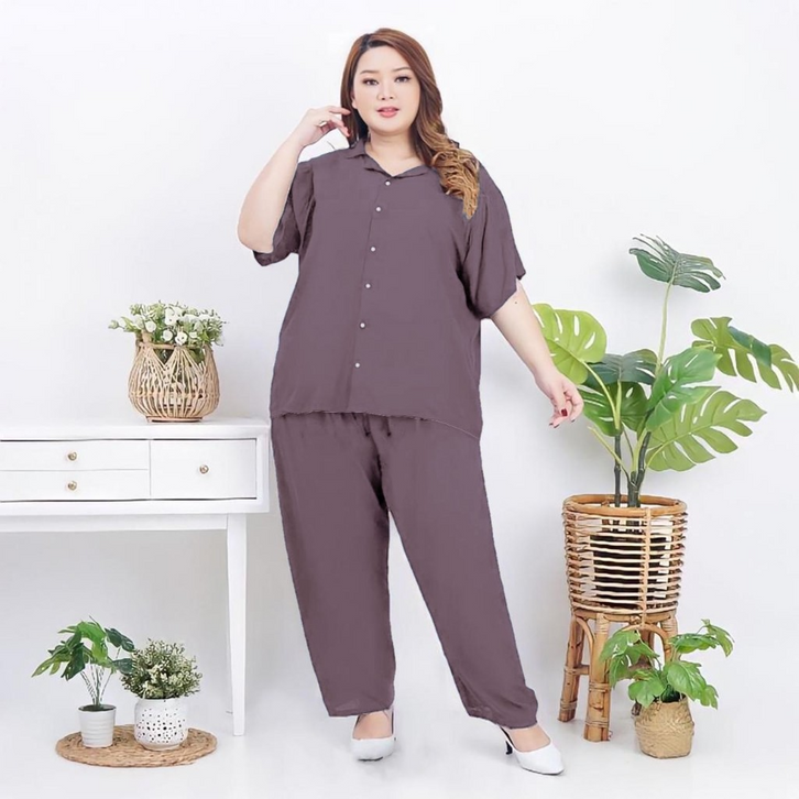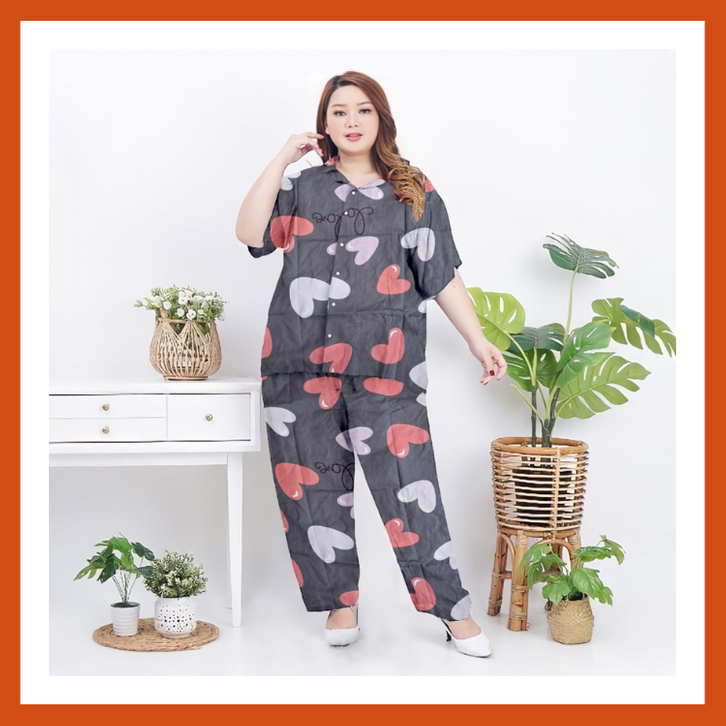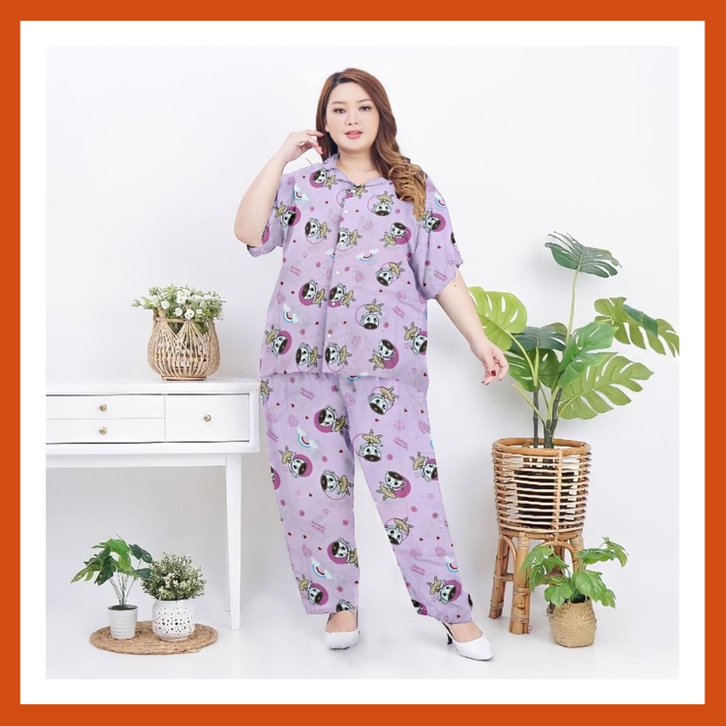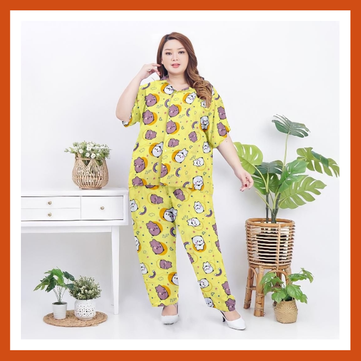 [Star] Piyama Wanita Setelan Jumbo Polos Ld 120cm One Set Baju Tidur Wanita Dewasa Lengan Pendek