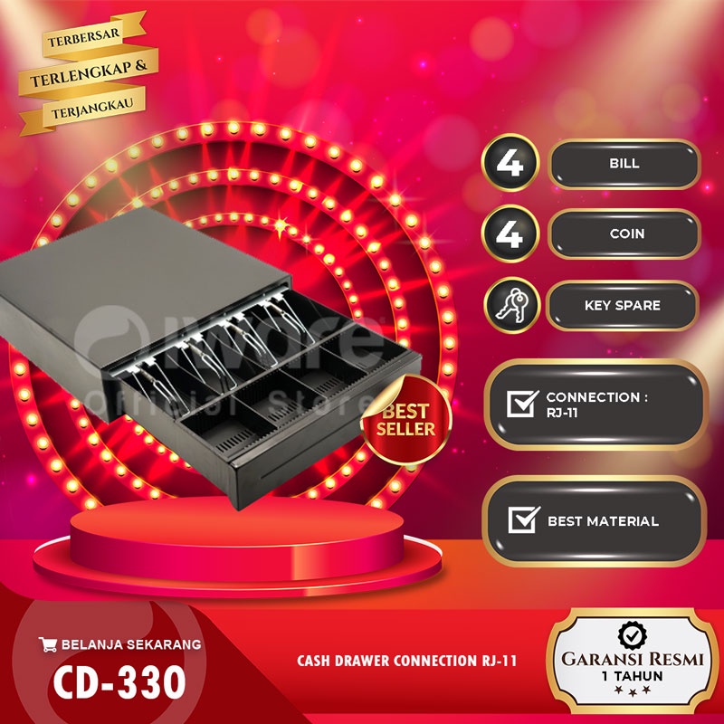 IWARE LACI KASIR CASHDRAWER MINI CD-330 / CD-320 4 BILL 4 COIN RJ11