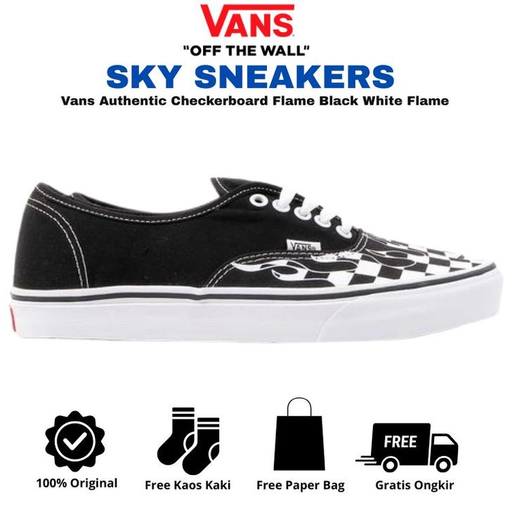[Mall] SEPATU VANS ORIGINAL SNEAKER PRIA WANITA VANS AUTHENTIC CHECKERBOARD FLAME BLACK WHITE FLAME SEPATU KASUAL