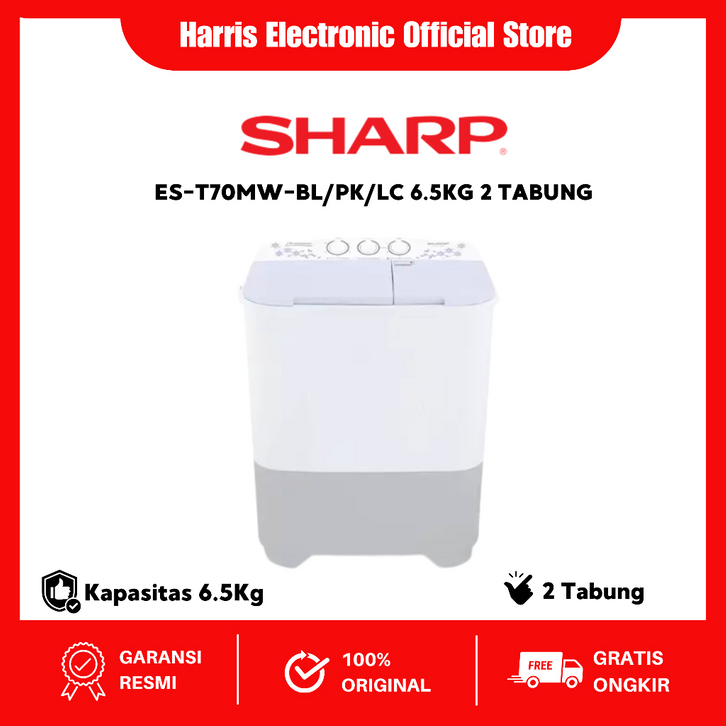 DISKON 70% MESIN CUCI SHARP ES-T70MW MESIN CUCI DUA TABUNG - TWIN TUB - MANUAL T70MW 6.5KG BERGARANSI MESIN CUCI MURAH