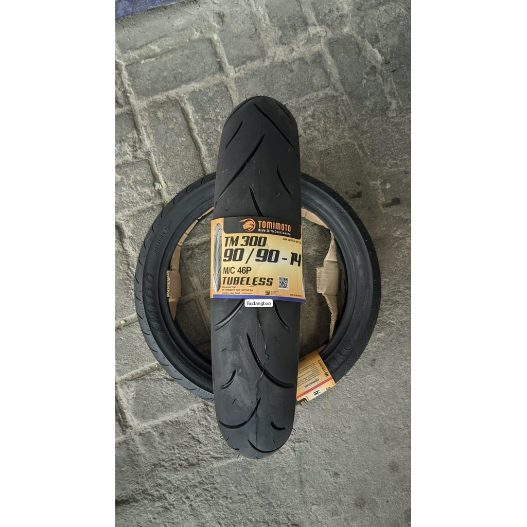 ( TM300 ) TOMIMOTO 90 / 90 - 14 TM 300 TUBELESS WET LOOK Sporty Ban Motor Matic Tubeless Free Pentil