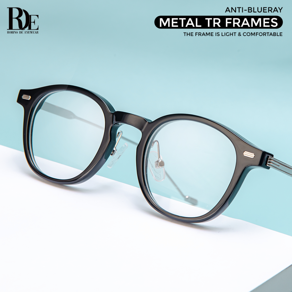 KACAMATA BULAT MODERN POLA TITANIUM PRIA DAN WANITA BISA MINUS PHOTOCROMIC BLUERAY 0969
