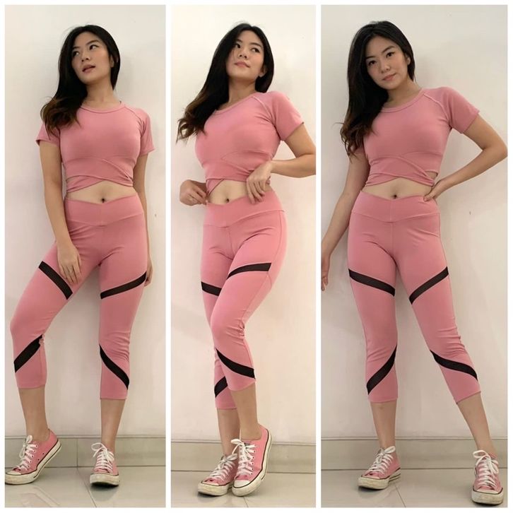 Baju Yoga Wanita Setelan senam aerobik zumba yoga gym fitness model crop silang pendek Legging kombinasi tile 7 8