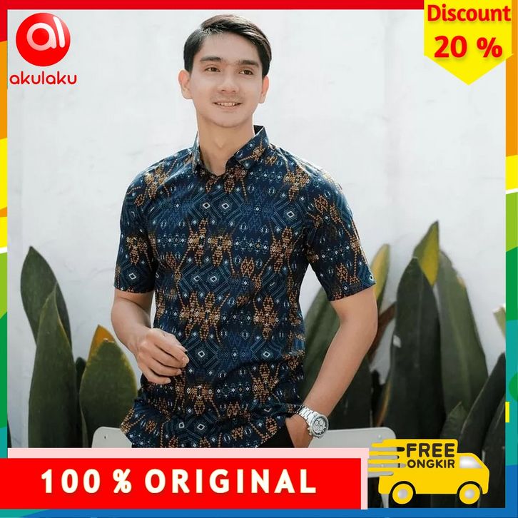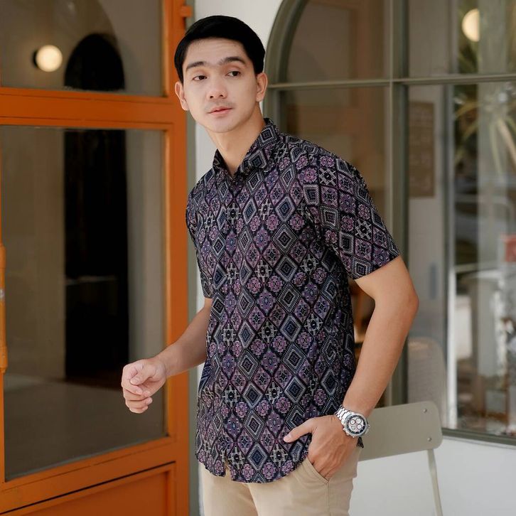 Credomenstore Short Batik Diamond Motive Size M-XL Kemeja Batik Pria Lengan Pendek