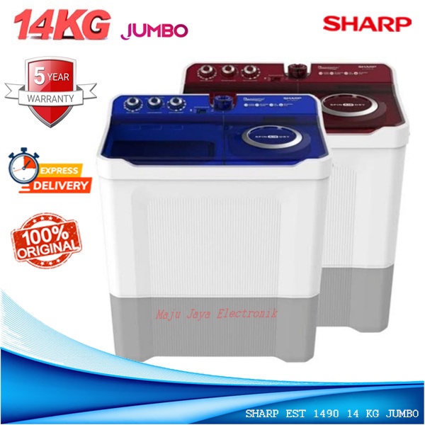 Mesin Cuci 2 Tabung Sharp EST 1490 14 KG Jumbo Cuci Kering Dolphin Wave Original Garansi Resmi