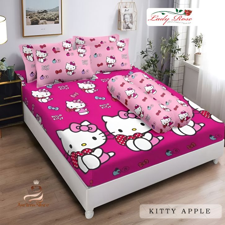 Sprei Lady Rose 180x200 Motif Hello Kitty Apple Bahan Halus Lembut Tidak Luntur