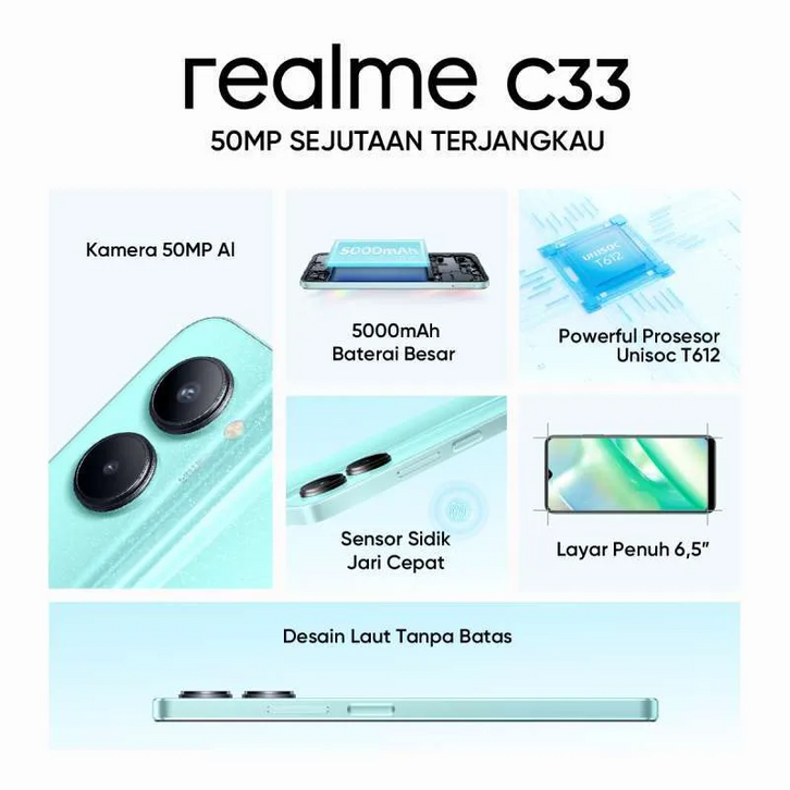 Realme C33 4GB+128GB [ Unisoc Tiger T612 | Android 12 | 5000mAh Normal Charging | Original Garansi Resmi 12 Bulan ]