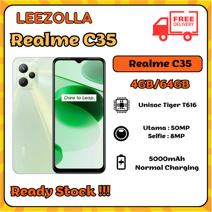 Realme C35 RAM 4GB/128GB | Unisoc Tiger T616 | 5000mAH fast charging 18W | Original Garansi Resmi 12 Bulan.