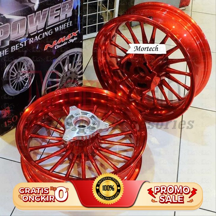 ORIGINAL-POWER VELG PELEK RACING TAPAK LEBAR N MAX NMAX OLD 2014-2019 PALANG 18 CLASSIC MERAH 13-350 & 13-400
