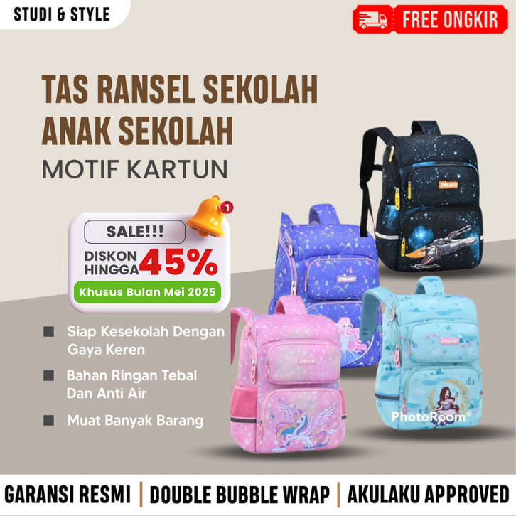 Tas Ransel Sekolah Anak Cewek Laki Cowok Cewek Putra Putri Tk Sd Zm Baby Motif Kartun Pesawat Princess Unicorn
