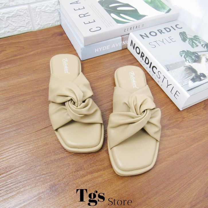 SENDAL WANITA SIMPLE Sandal Wanita Flat Silang Kerut NG-18 - SENDAL WANITA TERBARU 2023