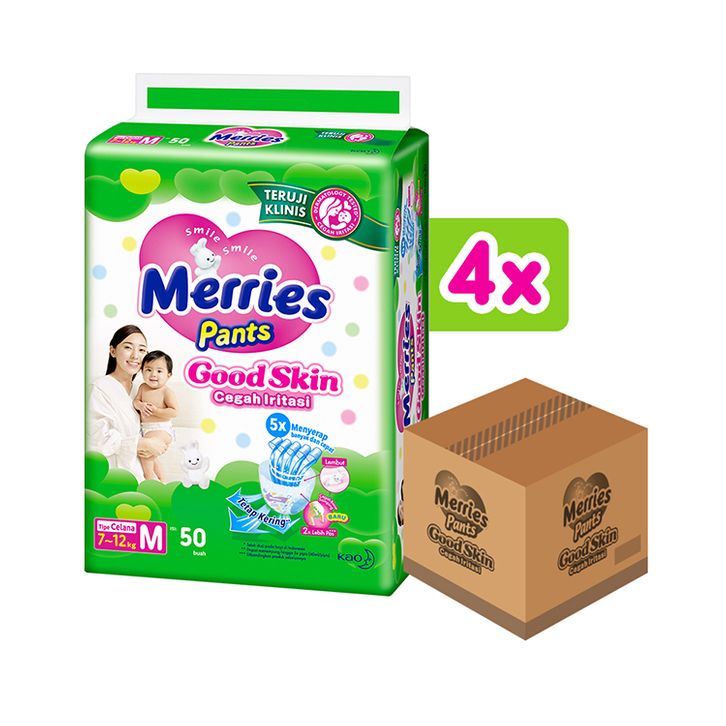 Pampers Merries Pants Good Skin 1 Dus Karton Ukuran M 50 Isi 4 Pack Popok Celana