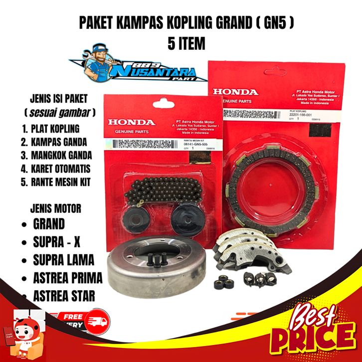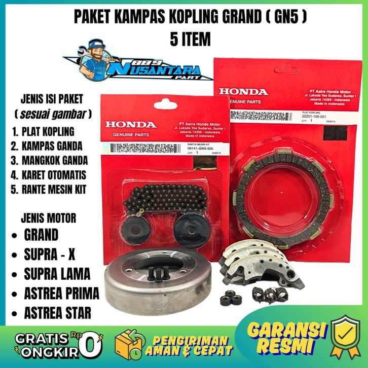 PAKET KOPLING 5ITEM KAMPAS KOPLING+GANDA+MANGKOK+KETENG+KARET GANDA GRAND / SUPRA X / PRIMA / ASTREA