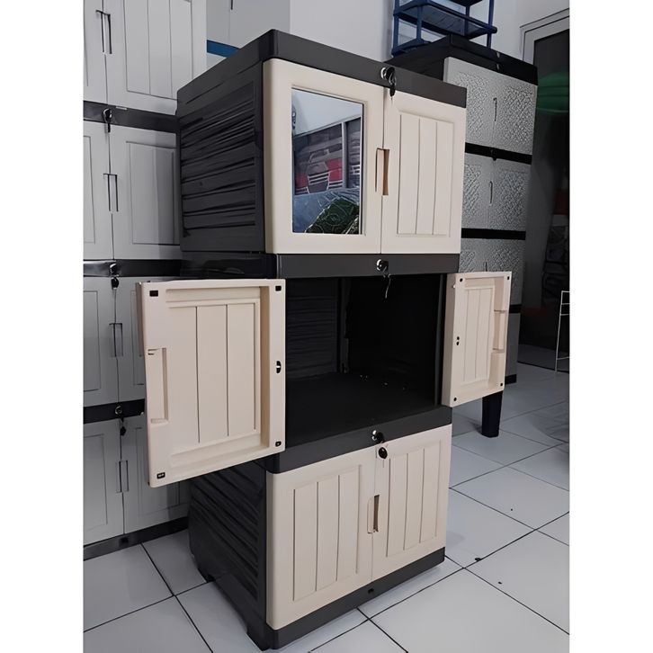[Mall]LEMARI PLASTIK LEMARI PAKAIAN TERBARU Lemari Pakaian Plastik Susun KACA ada KUNCI