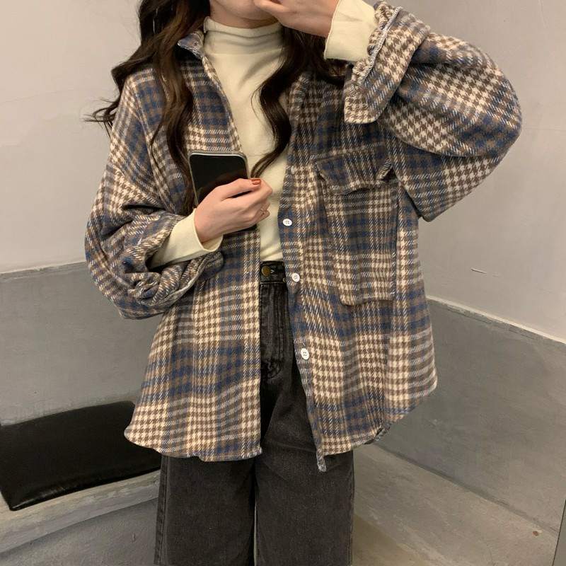 KEMEJA FLANNEL WANITA OVERSIZE OUTER KEMEJA LENGAN PANJANG WANITA BLOUSE KOTAK KOTAK