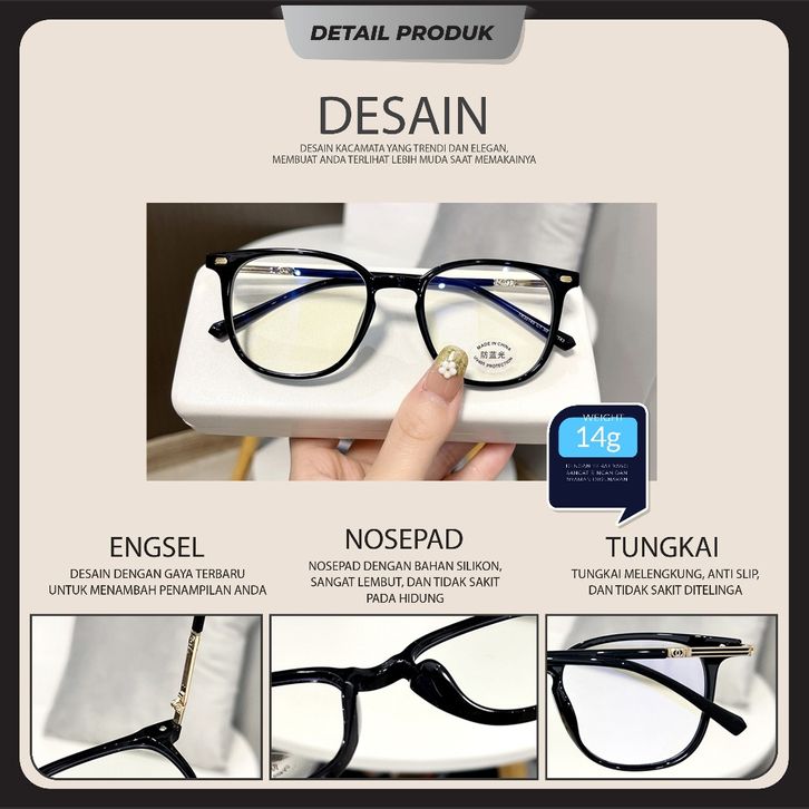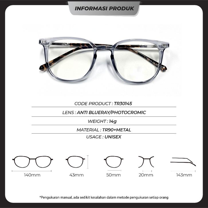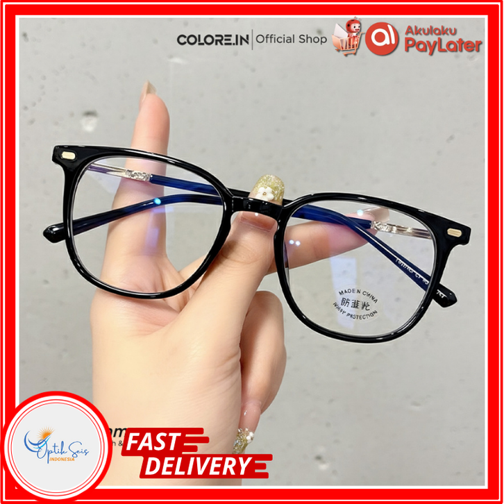 Colore.in Kacamata Photocromic Anti Radiasi Fashion Wanita Bentuk Kotak Bahan Metal+TR-90 TR30145