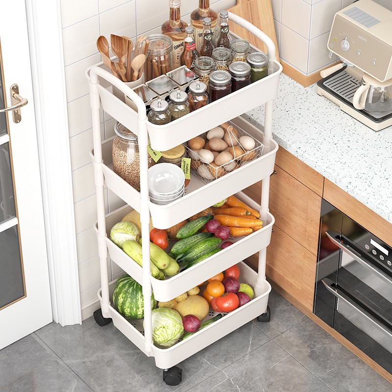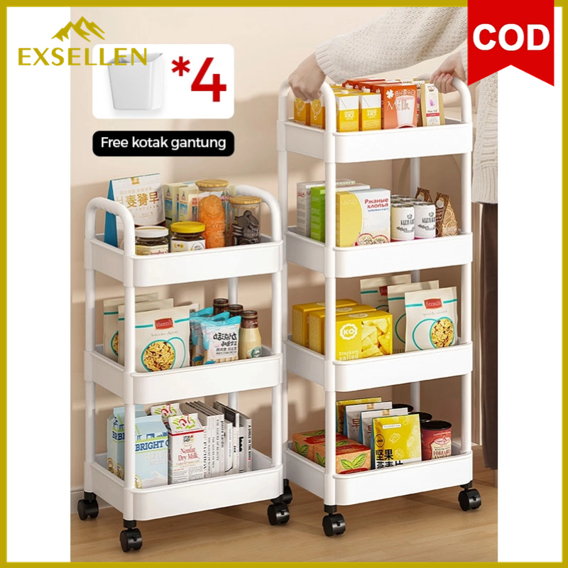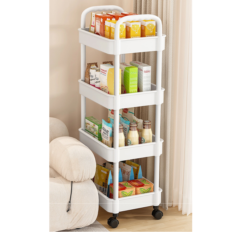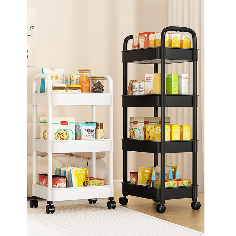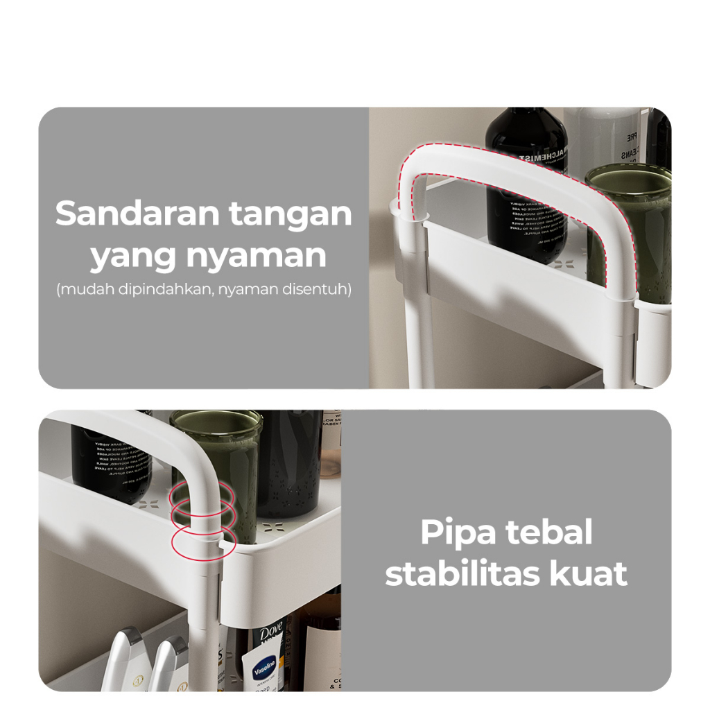 RAK TROLI SUSUN SERBAGUNA DAPUR TEBAL PLASTIK SALON 4 SUSUN KAMAR MANDI DENGAN RODA DAN PEGANGAN