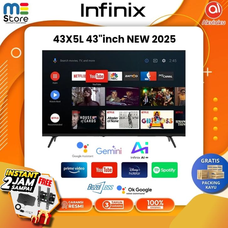 [ NEW 2025 ] Infinix Google Smart TV X5L 43'inch FHD - Ai Voice Chat GPT - YouTube Amazon Prime Disney+