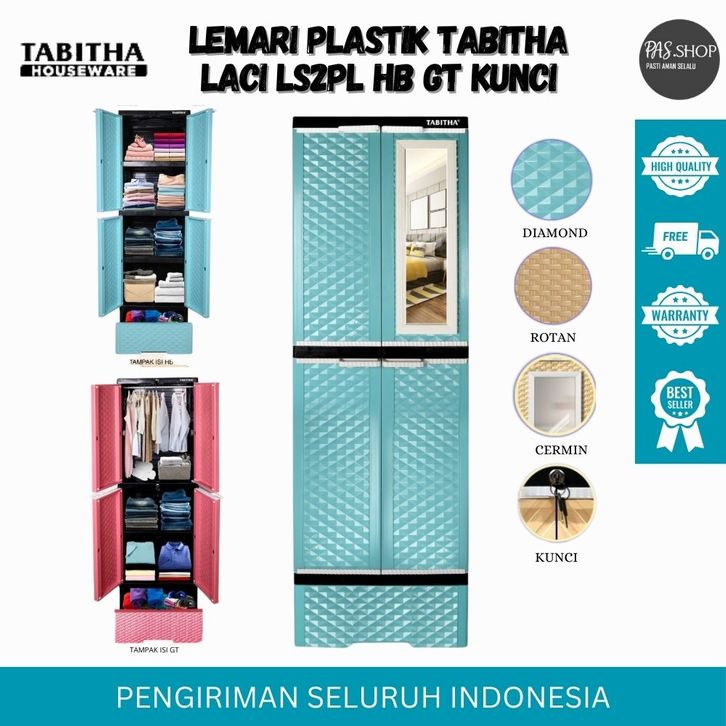LEMARI PLASTIK TABITHA LS2PL LS3PL HB GT 3 4 2 5 SUSUN PINTU JUMBO RAK PAKAIAN BAJU KACA GANTUNG KUNCI CERMIN MINIMALIS