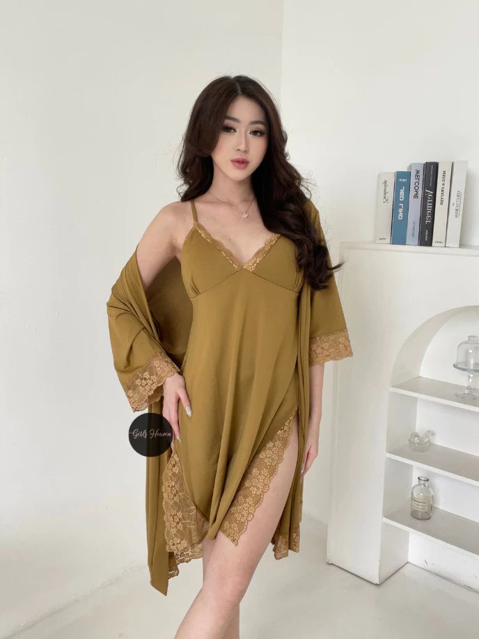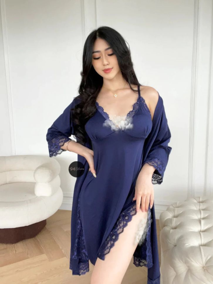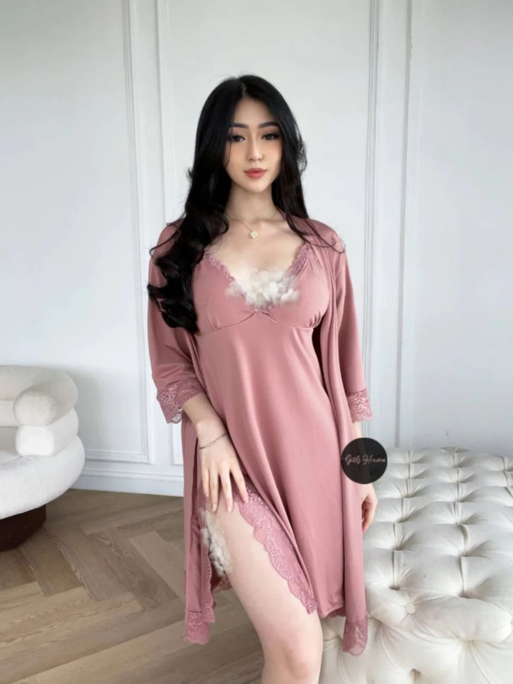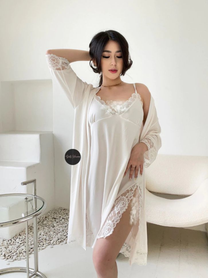 Lingerie Dress Kimono Belt Renda Lengan Pendek Setelan Baju Tidur Wanita Dewasa Seksi 083
