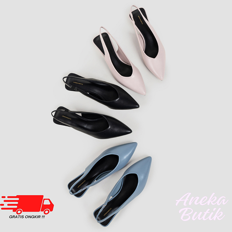 Sandal Urban Co Wanita Woman Mules Chatann Blue Flat Shoes Cewek Original