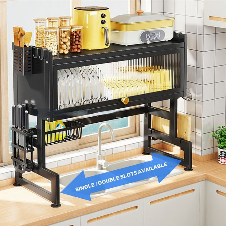 Rak Piring Tertutup Rak Piring Wastafel With Cover Stainless Steel Rak Dapur Rak Piring Gantung Cuci Piring Wastafel/F10