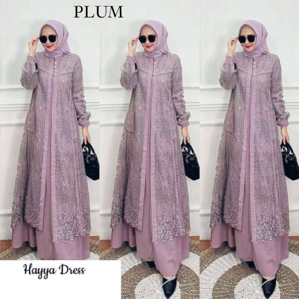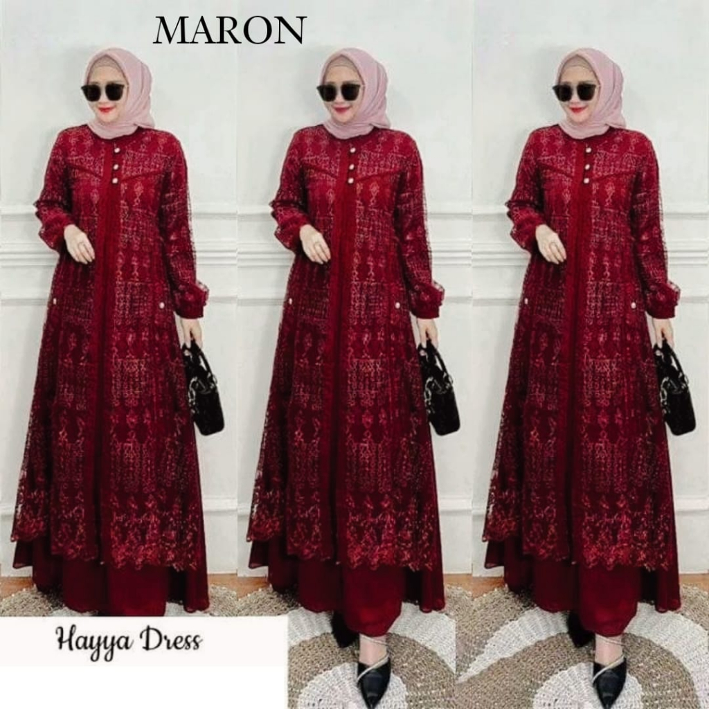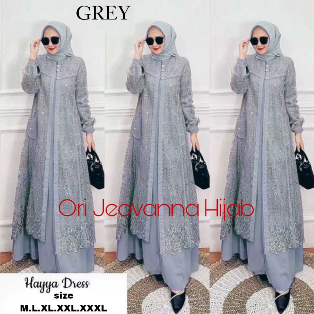 HAYYA DRESS PREMIUM BRUKAT GAMIS PESTA MEWAH MOSCREPE MIX BRUKAT / DRESS KONDANGAN SAGE