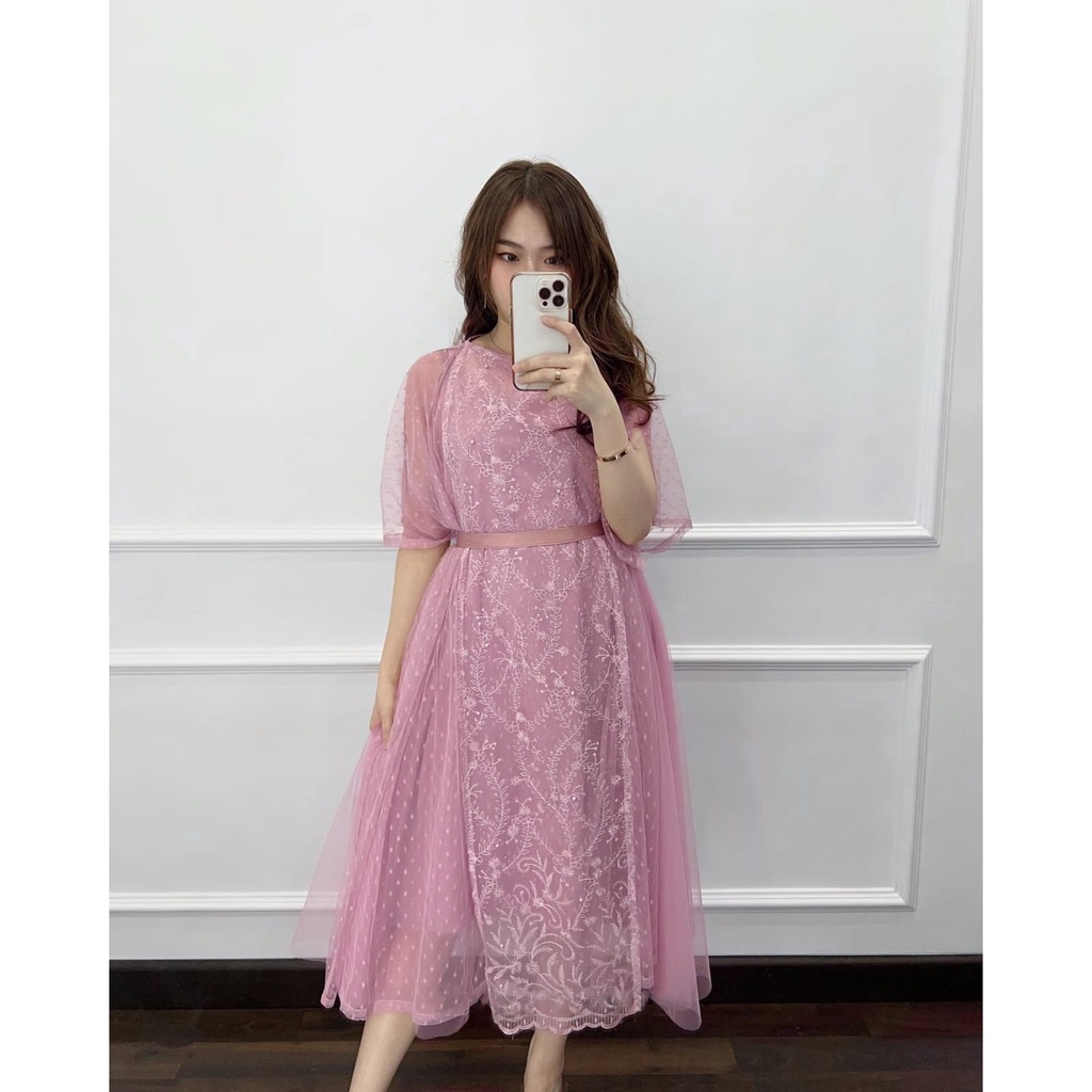 SETELAN LORENZA DRESS MIDI OUTFIT PESTA KONDANGAN LORENZA MEWAH DAN ELEGAN BROKAT TILE BORDIR