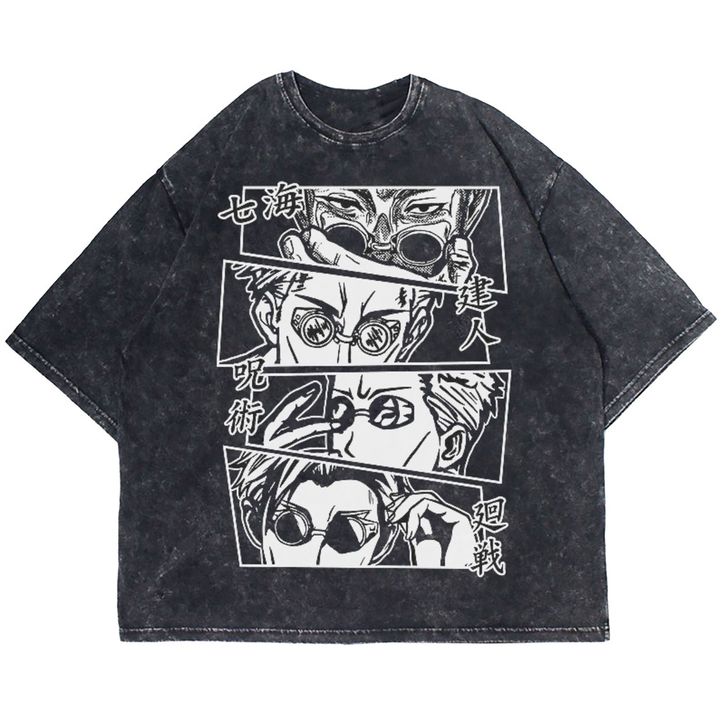 Kaos vintage nanami kento part of face Oversize T-shirt | washed tee | kaos anime jujutsu kaisen vintage