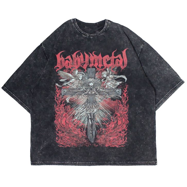 KAOS VINTAGE OVERSIZE BAND BABY METAL MEGITSUNE WASHING VINTAGE TEE ( WASHING T-SHIRT )
