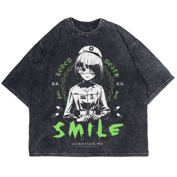 Kaos vintage anime smile Oversize T-shirt | washed tee | kaos vintage