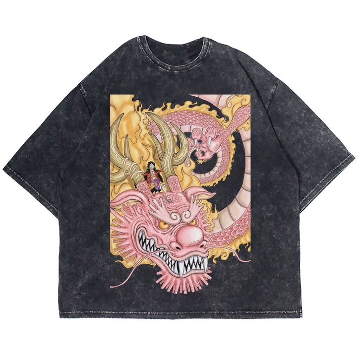 Kaos Vintage One Piece Luffy And Momonosuke Mode Dragon Oversize T-shirt | washed tee | kaos vintage