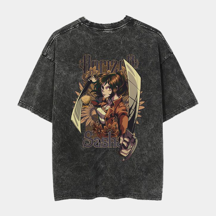 Kaos Vintage T-shirt Oversize Attack On Titan Sasha Cotton 24S