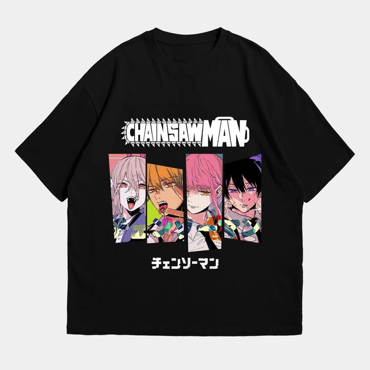 Kaos Vintage Oversize T-shirt Chainsaw Man Devil Hunter Cotton 24S