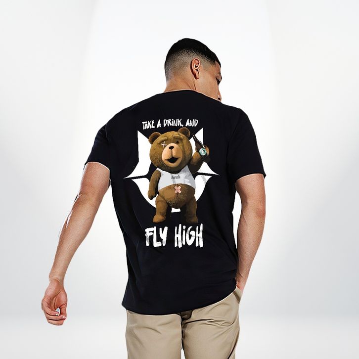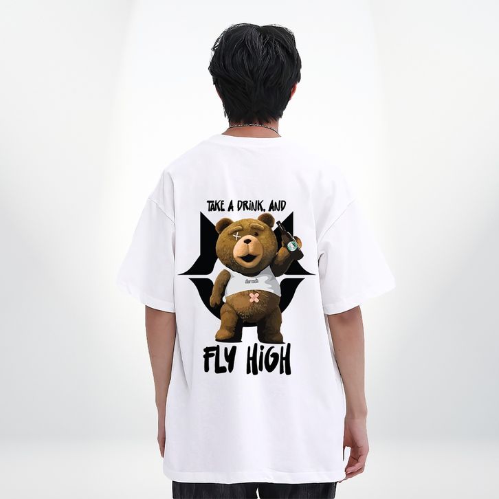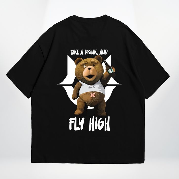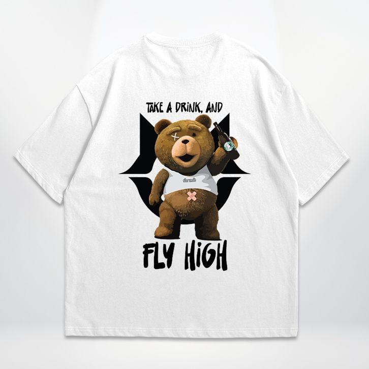 Kaos Vintage Oversize T-shirt Bear Fly High Cotton 24S