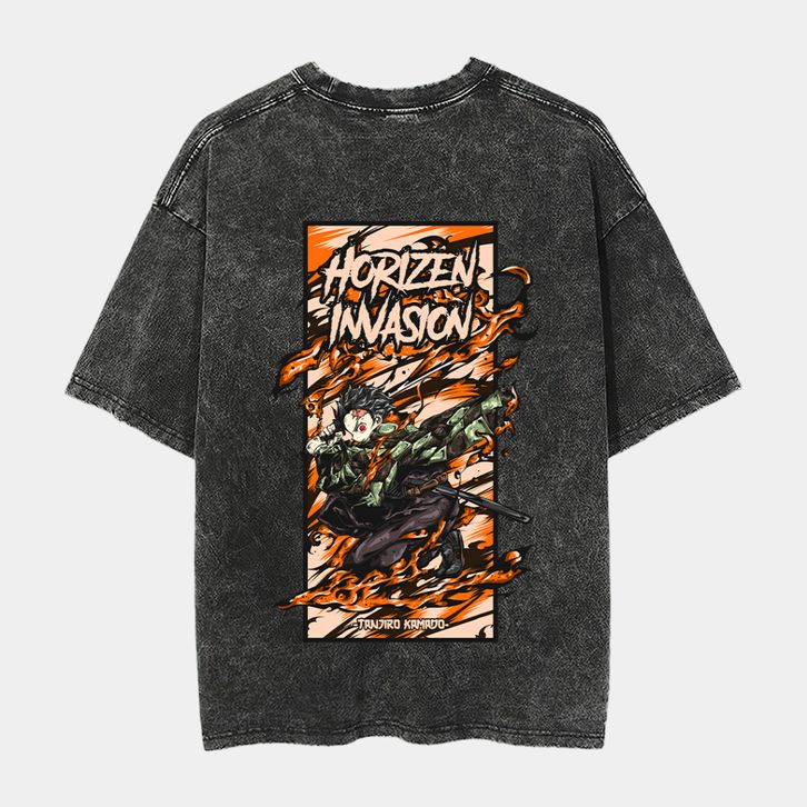 Kaos Vintage T-shirt Oversize Kimetsu Kamado Tanjiro Cotton 24S