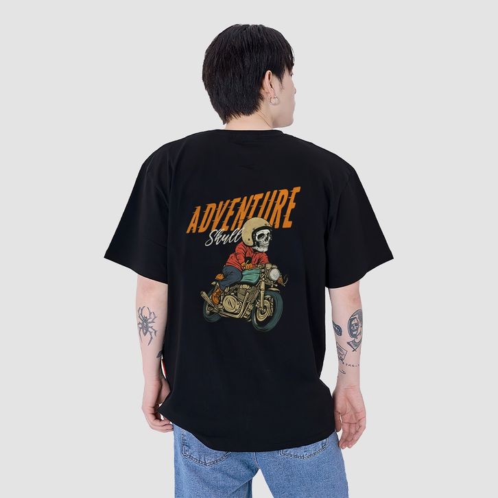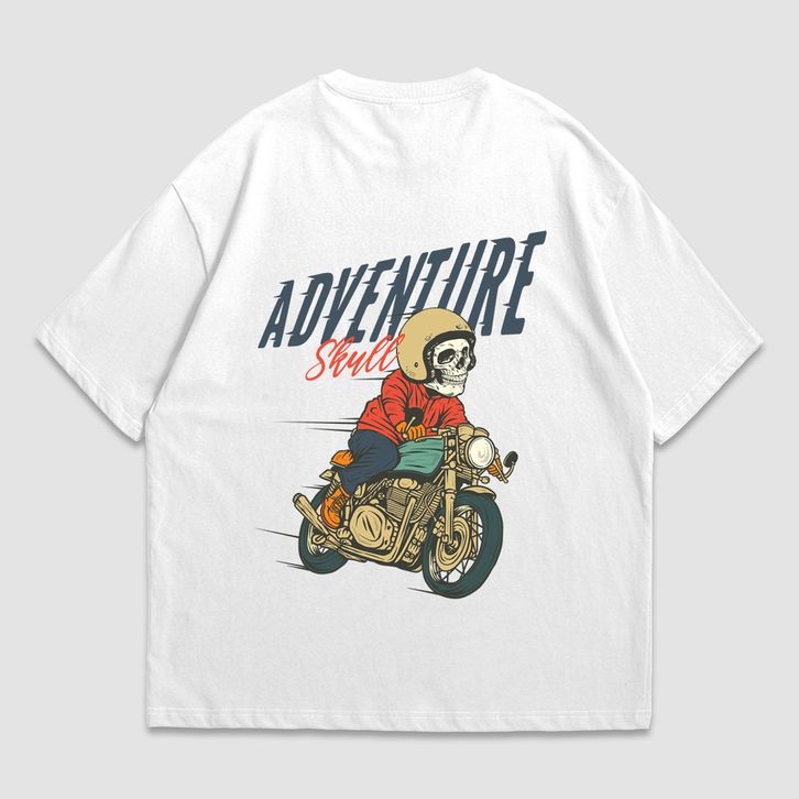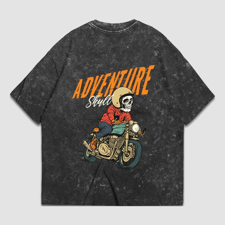 Kaos Vintage T-shirt Oversize Motorcycle Adventure Skull Cotton 24S