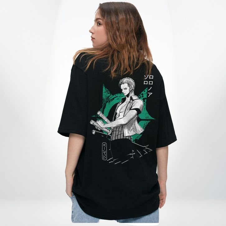 Kaos T-shirt Oversize One Piece Zoro Green Logo Cotton 24S