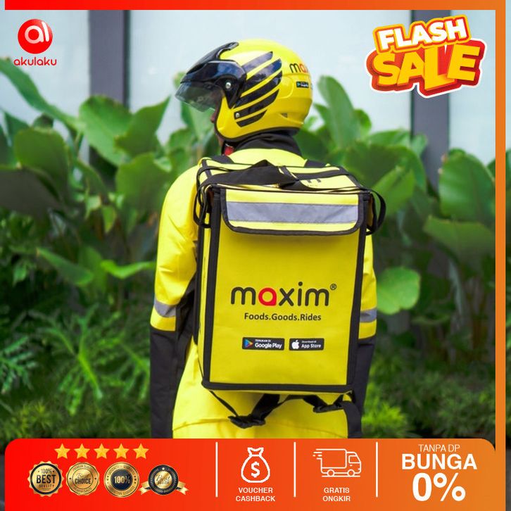 MAXIM - Paket Atribut Lengkap 1 Helm, 1 Jaket & 1 Tas Maxim - Transportasi Online Terlaris