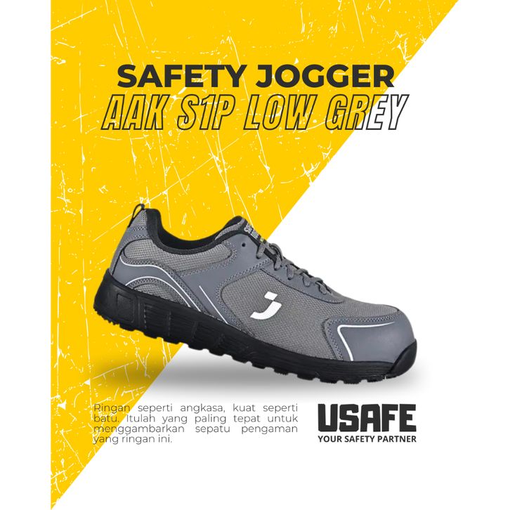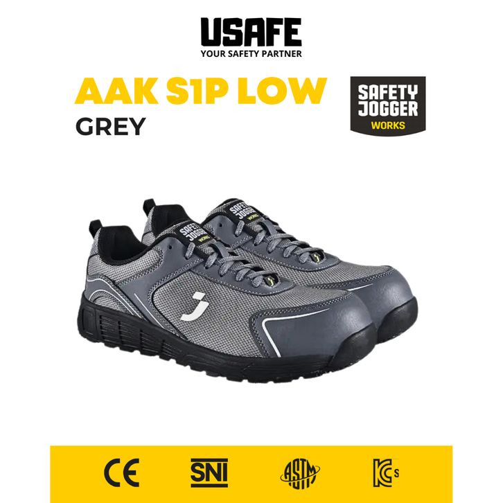 Sepatu Safety Jogger AAK S1P Low Grey Composite Sepatu Safety Pria Kerja Outdoor Proyek Shoes Sepatu Safety Ujung Besi