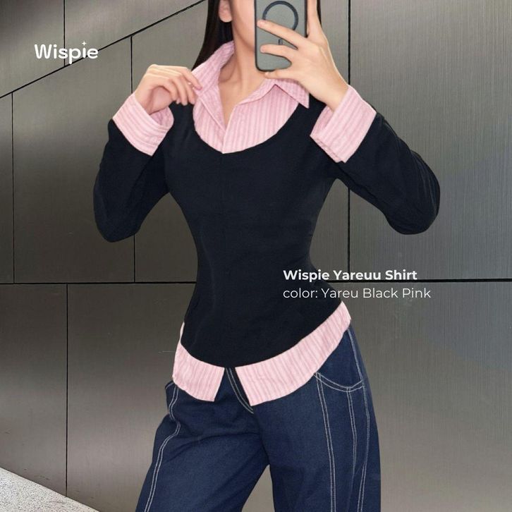 BLOUSE WISPIE YAREUU SHIRT KEMEJA FITTED WANITA KOMBINASI LAYER WARNA BIRU & PINK KEMEJA 2IN1 TERBARU