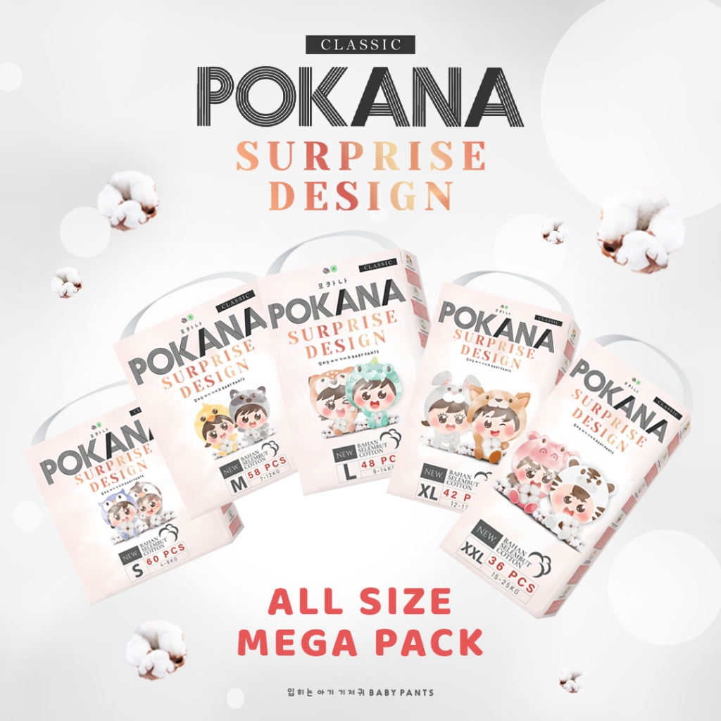 POKANA PANTS PAMPERS MEGA PACK UKURAN S60 M58 L48 XL42 XXL36 PAKET 1 KARTON POPOK CELANA BAYI MURAH SEKALI PAKAI